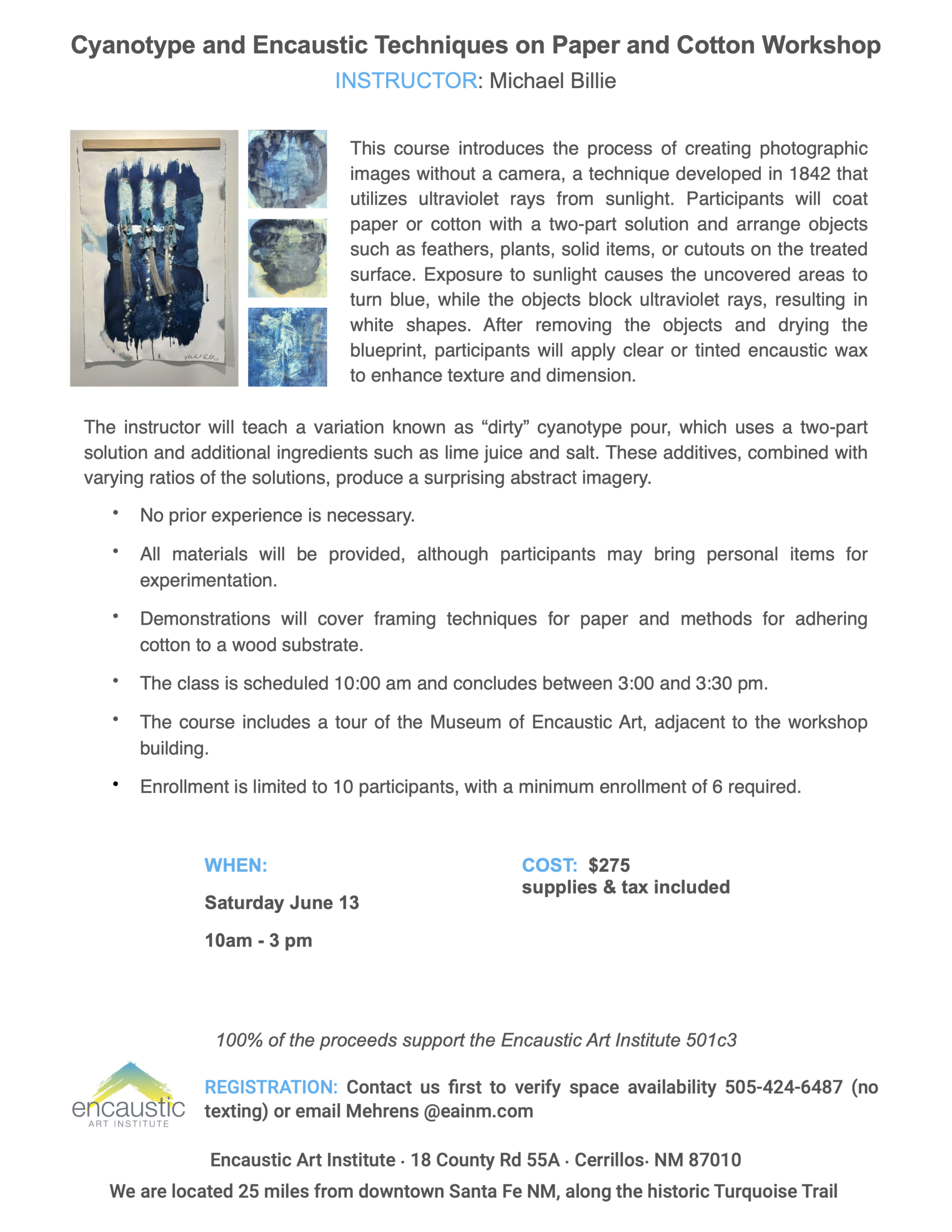 Contact Douglas Mehrens at 505-424-6487 or Mehrens@eainm.com to verify availability. Then click the “Add to Cart” button for the workshop date you’d like to attend.