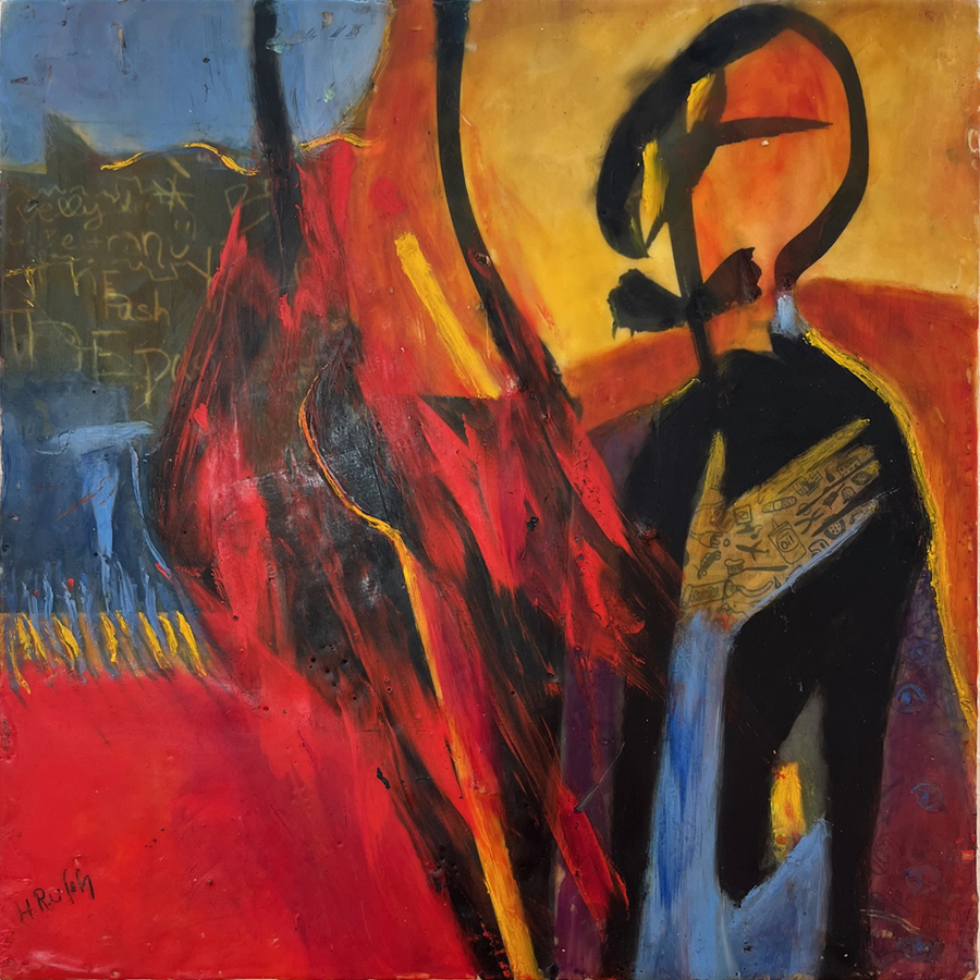 Working Class Hero, encaustic, on board, 13.5 x 16.5 inches