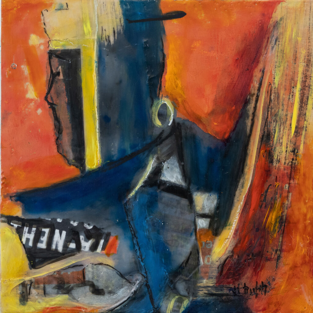 encaustic, collage, oils, on wood panel, 12 x 12 inches