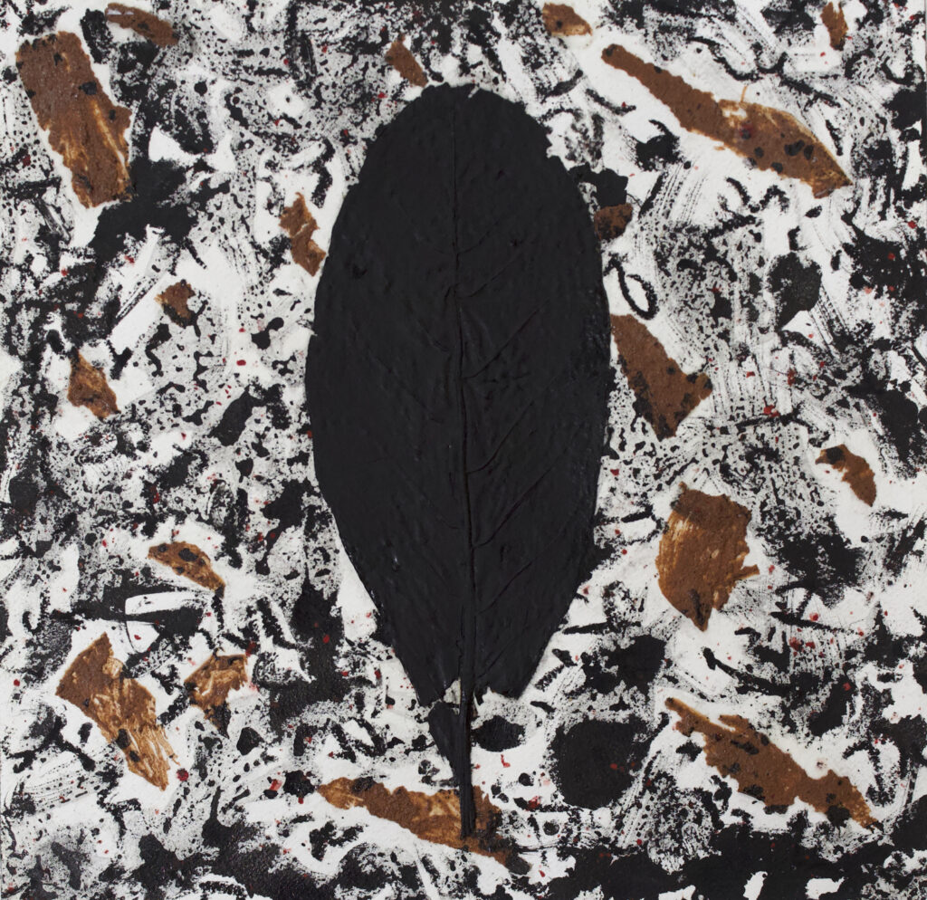 In the A Leaf in the Wind series, I poured my pain and grief into countless images of Indian leaves. In an attempt to assuage my sorrow, I traced around the leaves repeatedly, sometimes incorporating the actual leaves I gathered in India into the work.