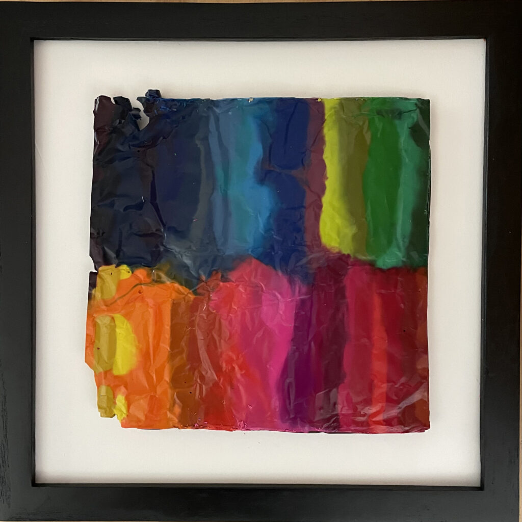 I was inspired when thinking about the joy of being young while opening a new box of crayons. All the colors seemed full of potential and magic. Creating and playing with curiosity without expectations or judgment. My life is being pulled in multiple ways right now. Not unlike many of us. As of late, to help myself in all those life tasks, I’ve been saying, “When life is life…” I need to play, because THAT is what inspires me. So what better way to play than with a box of crayons and some heat.