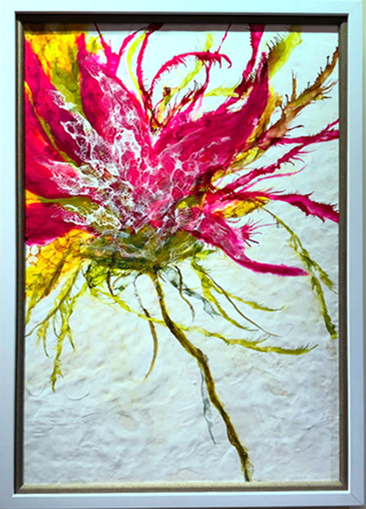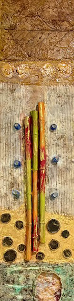 mixed media with encaustic, on wood panel, framed