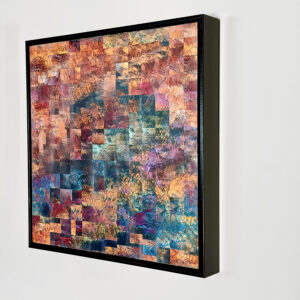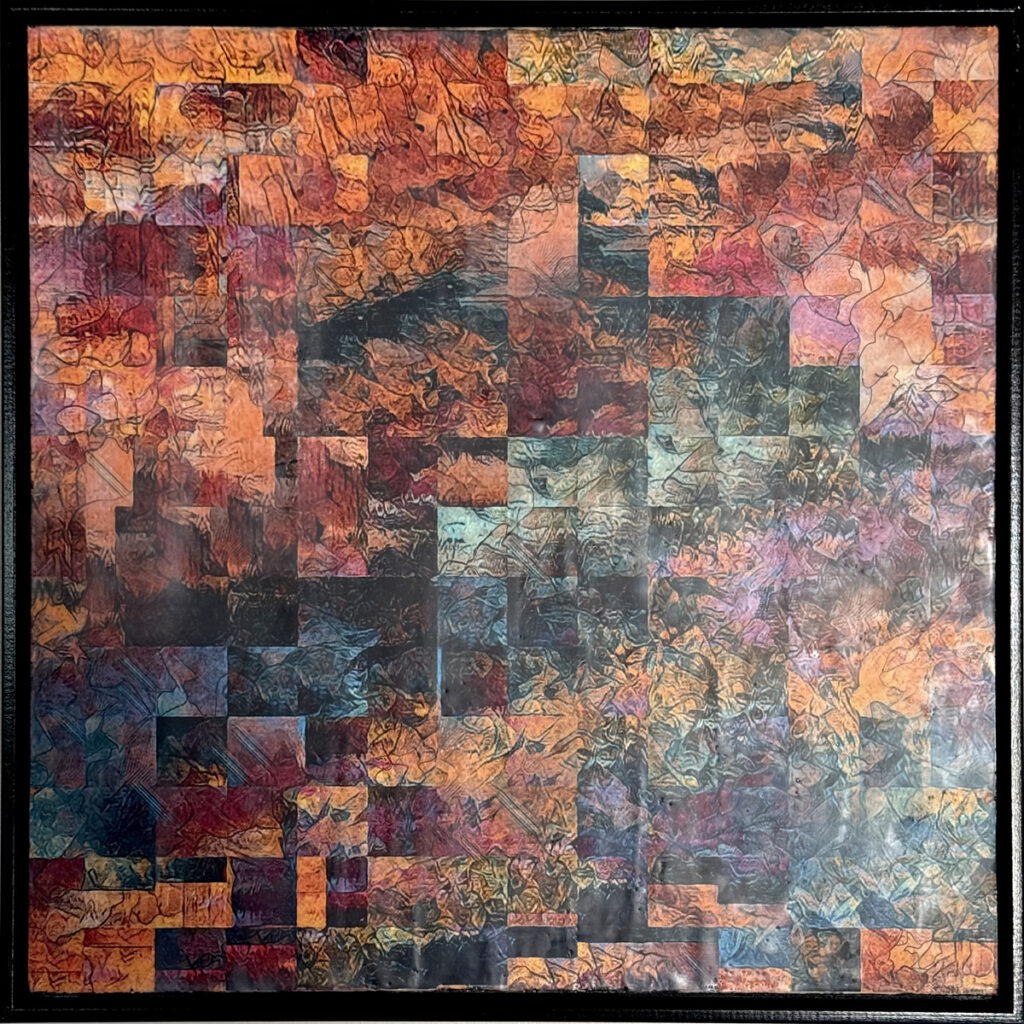 Quilted Layers is an encaustic photograph that reveals a tapestry of shifting color and texture. Light and wax merge to create the illusion of depth. Fluid, and softly abstract where layers seem to float and fold like fabric in motion.