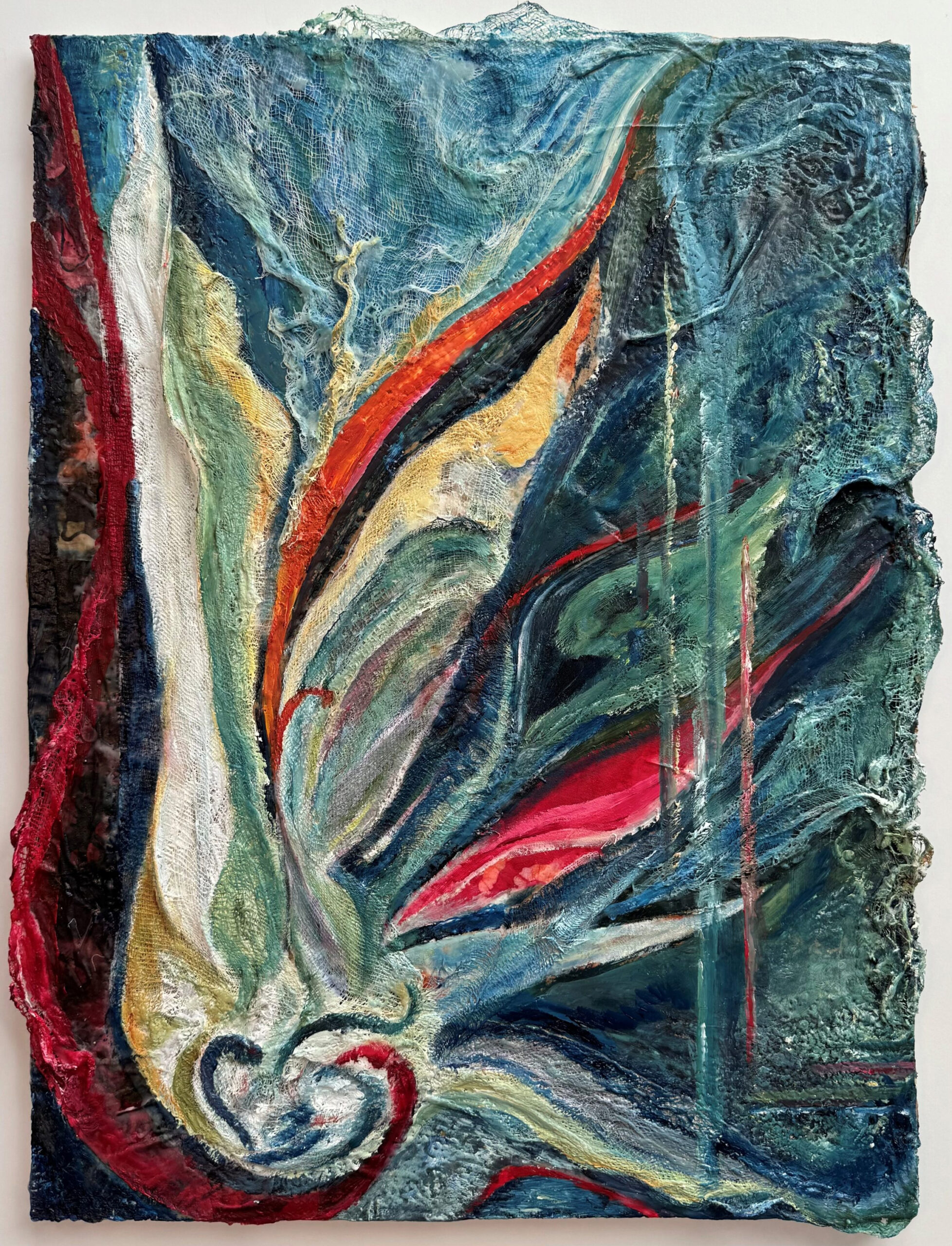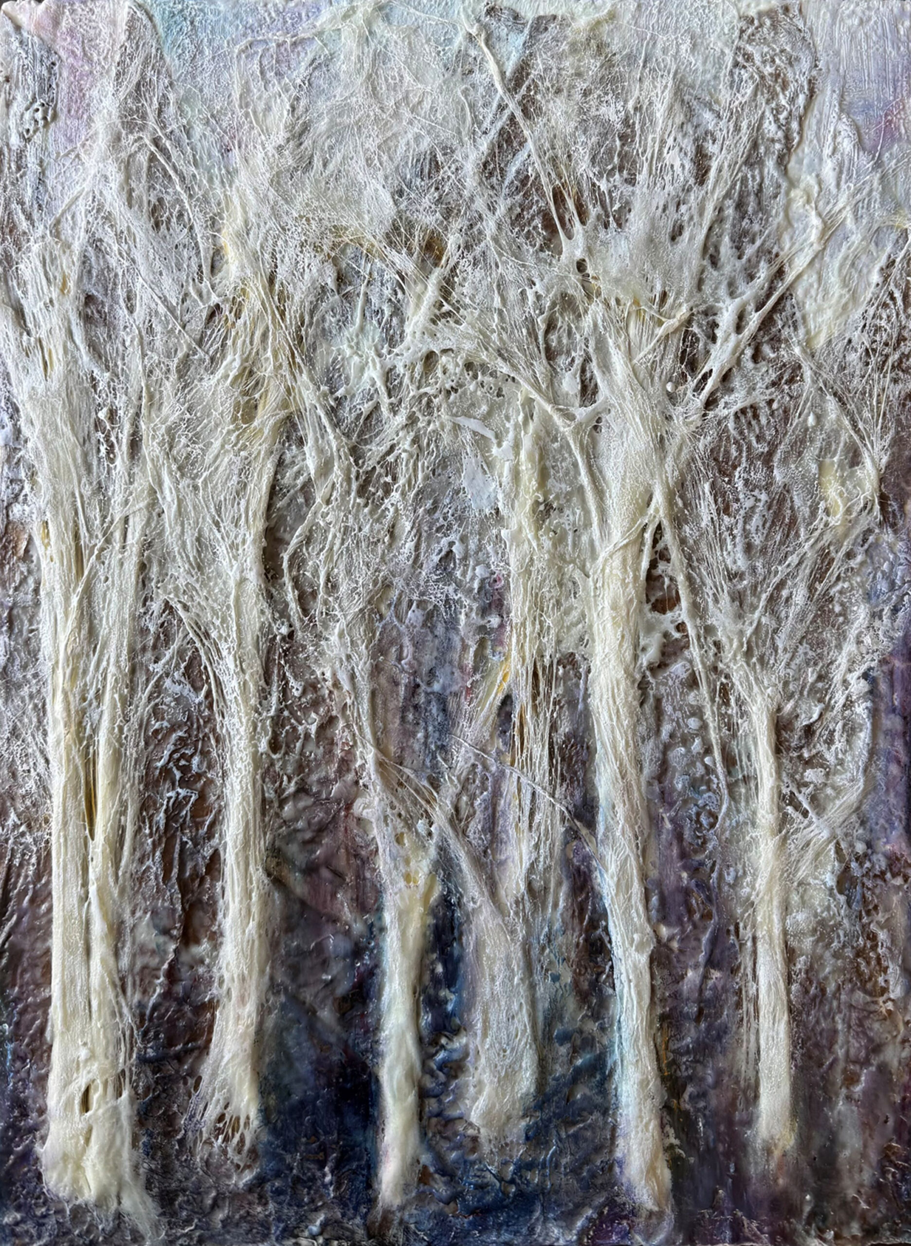 encaustic, fiber, oil on cork, 24 x 18 inches