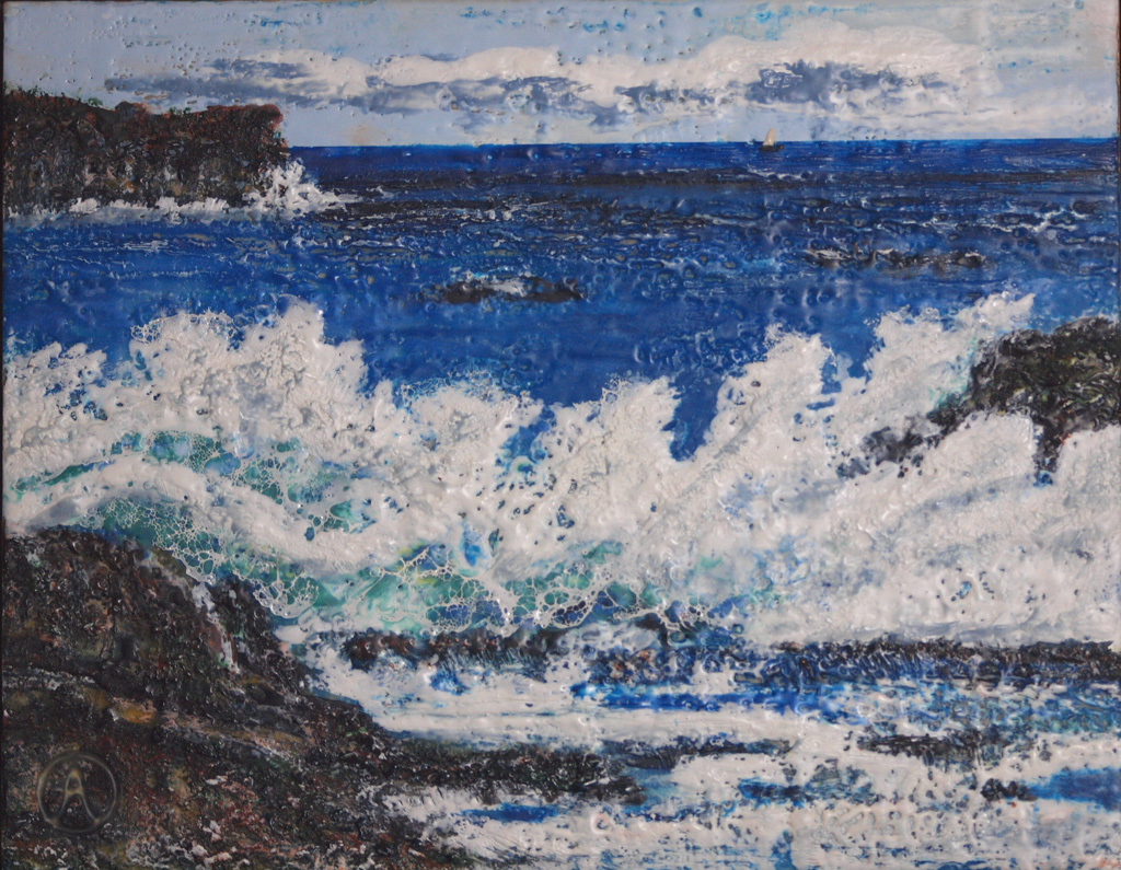 encaustic paint with shellac burn, 11 x 14 x .75 inches (12.5 x 15.5 x 1.25 inches framed)