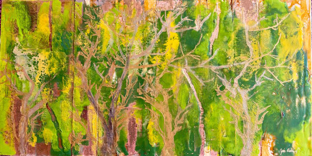 encaustic, copper, on wood panel