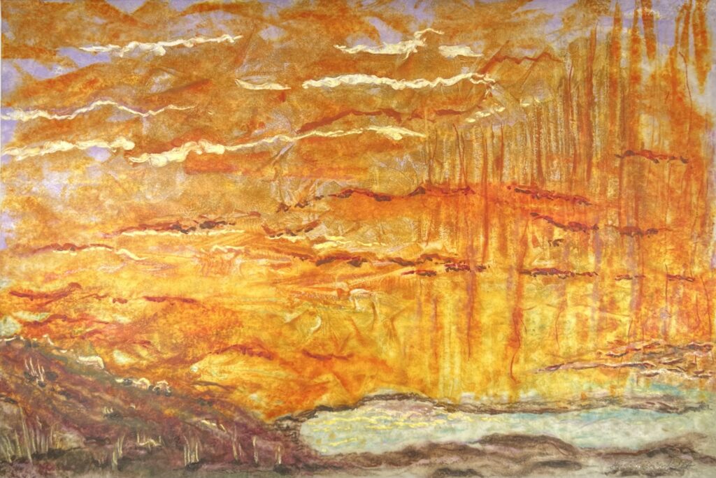 encaustic paint, colored pencil, rice paper, 12.125 x 18 inches