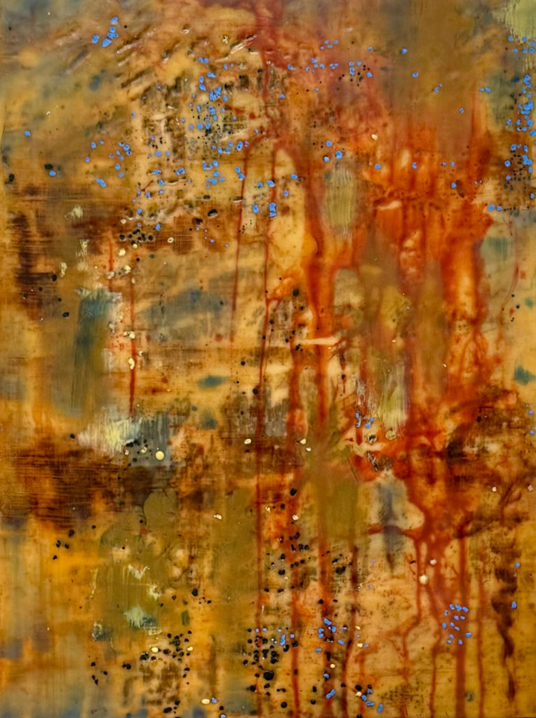 encaustic paint and medium with oil stick, 25 x 20 inches