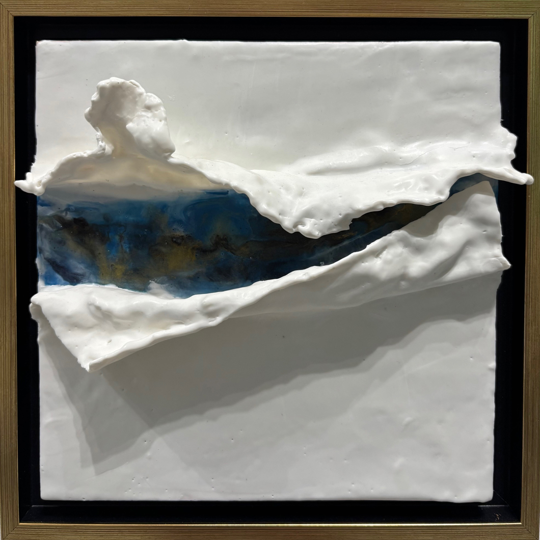 encaustic wax, pigment, gold ink, cheesecloth, 8 x 8 inches