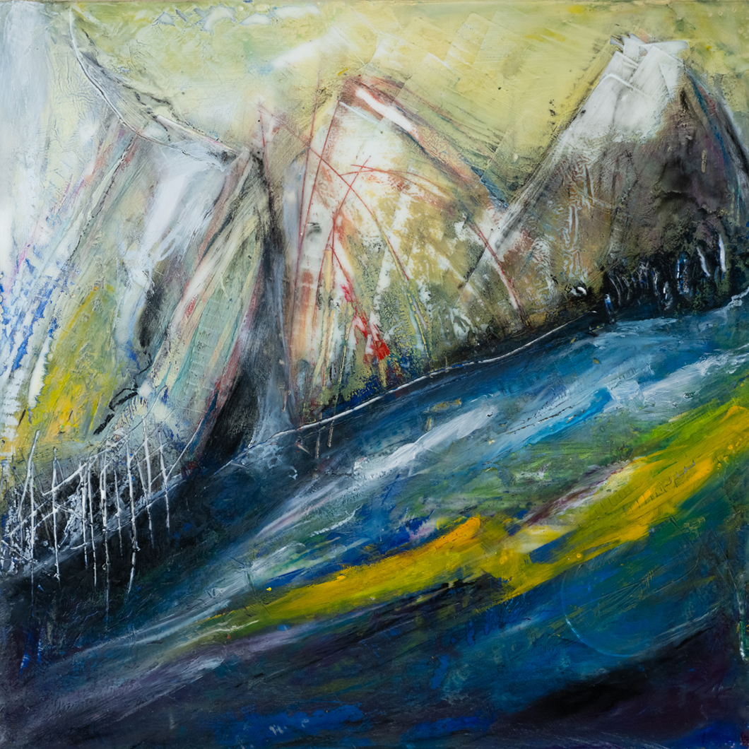encaustic, oil, on wood panel, 12 x 12 x 1 inches