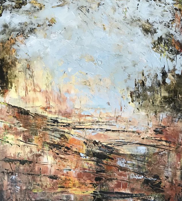 Medium: cold wax, acrylic, clear gesso, oil, on panel