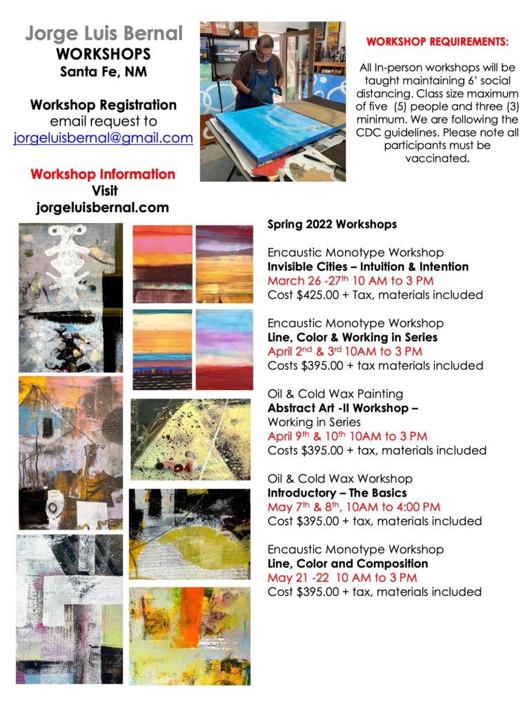Instructor Jorge Luis Bernal will be offering these workshops at his studio in Santa Fe.
